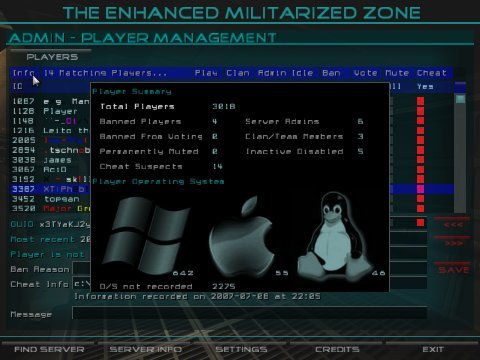 Ever been on a server where there is a player who has gone AFK and is holding the game up for everyone else? With EMZ this is addressed in a couple of ways. Inactive players can either be set to spectator mode or kicked from the server. As well as this EMZ servers will start the game when more than half the players are ready rather than everyone having to ready up. No more F3! F3! F3! spam.