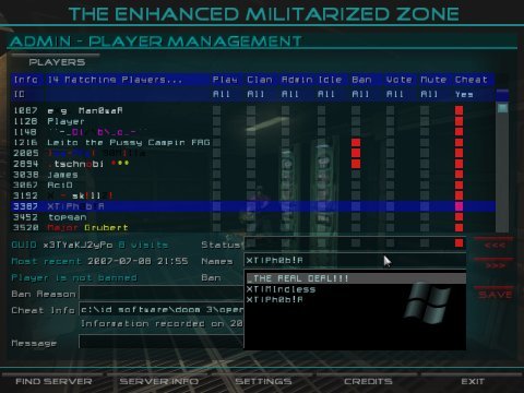 Ever been on a server where there is a player who has gone AFK and is holding the game up for everyone else? With EMZ this is addressed in a couple of ways. Inactive players can either be set to spectator mode or kicked from the server. As well as this EMZ servers will start the game when more than half the players are ready rather than everyone having to ready up. No more F3! F3! F3! spam.